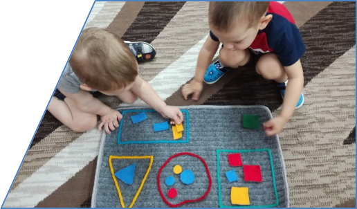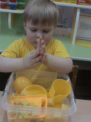 Большое внимание я уделила центру познавательной активности. В этом возрасте малыш получает информацию о мире в основном через чувства: ощупывая, рассматривая объект, познавая их свойства. В этом деле «Сенсомоторная коробка» – незаменимый помощник, с которым ребенок может получать много самых разных сенсорных ощущений, развивать моторику рук. Здесь малыши трогали на ощупь мягкие, твердые, колючие, шершавые, гладкие объекты; сортировали предметы по баночкам, ориентируясь на цвет или форму. Чтобы содержимое коробки развивало сенсомоторные способности малышей, его нужно систематически менять. Например, в один из дней, для разучивания названий цветов, помогли цветные сенсорные коробки. Играя с таким одноцветным сенсорным материалом, малыш быстро запоминал цвет, так как нужный цвет находился все время перед глазами.