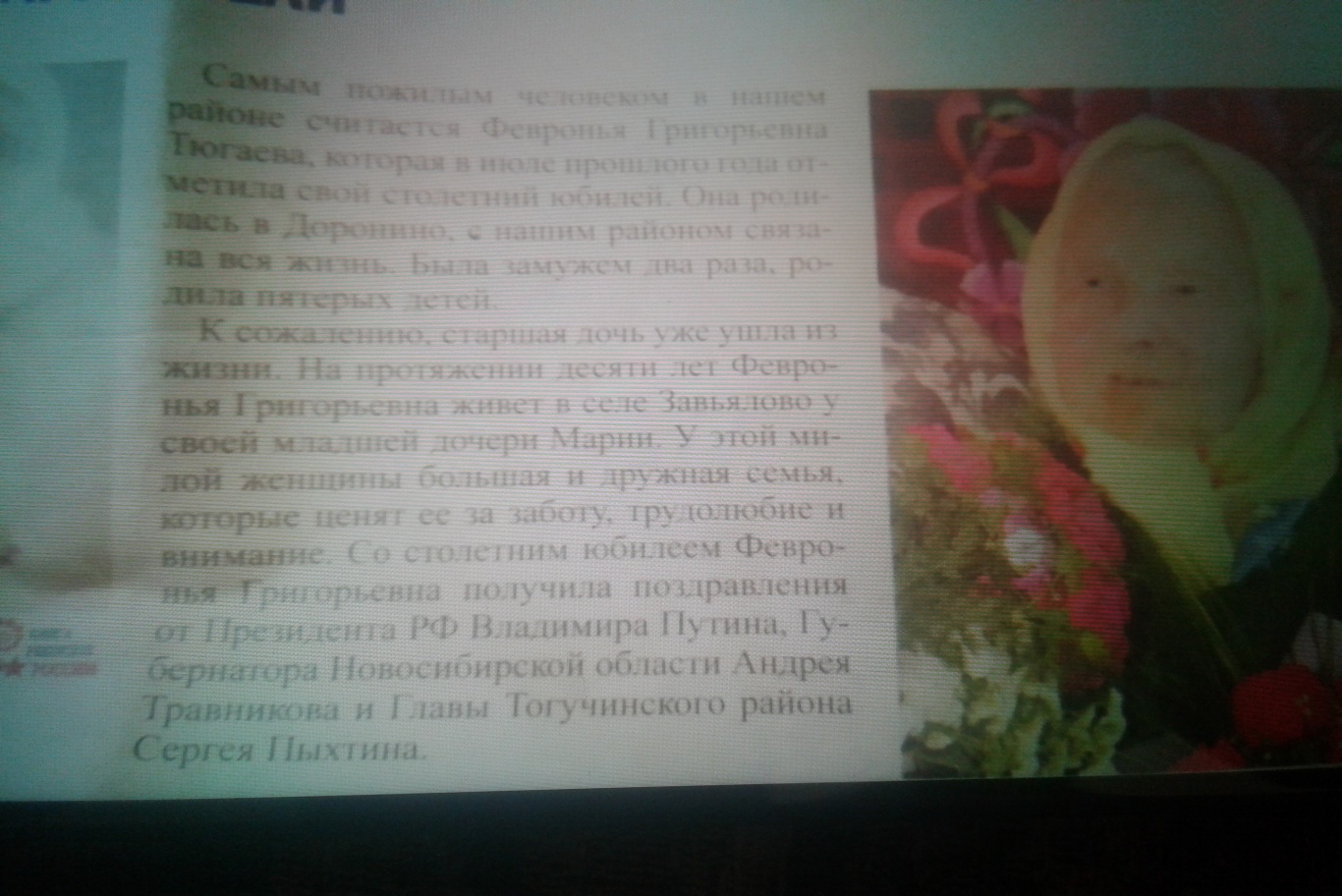 Статья в «Тогучинской газете» о самом старом человеке района