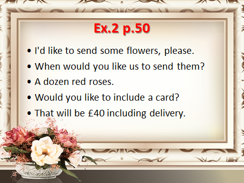 – освоить новые лексические единицы по теме «заказ цветов»;