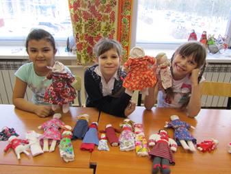 Дети рассматривали, трогали, изучали куклы. Причем дети разного возраста воспринимали эти куклы по-разному. Девочки старшего школьного возраста хотели приукрасить кукол, изменить пропорции, сменить наряды, нарисовать лицо. Детям младшего возраста нравилось в кукле все, они воспринимали цельный образ, не оценивали, а чувствовали куклу. Из опроса я выяснила, что современные дети проявляют интерес к старинной игровой кукле и хотят сшить себе таких текстильных «подружек» собственными руками.