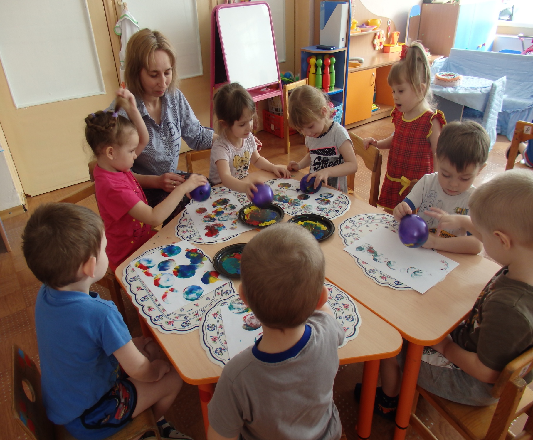 На практике убедилась в том, что для творчества в ходе любой изобразительной деятельности важна обстановка. Поэтому приучаю детей соблюдать тишину, включаю им спокойную музыку, чтобы ничего не отвлекало их от творческого процесса. Хотя с малышами это сделать очень сложно, но, тем не менее, постоянно работаю в данном направлении. Оценивая результаты детей, всегда с улыбкой на лице высказываю слова одобрения, вместе со всеми малышами любуюсь поделками, рисунками каждого ребенка.
