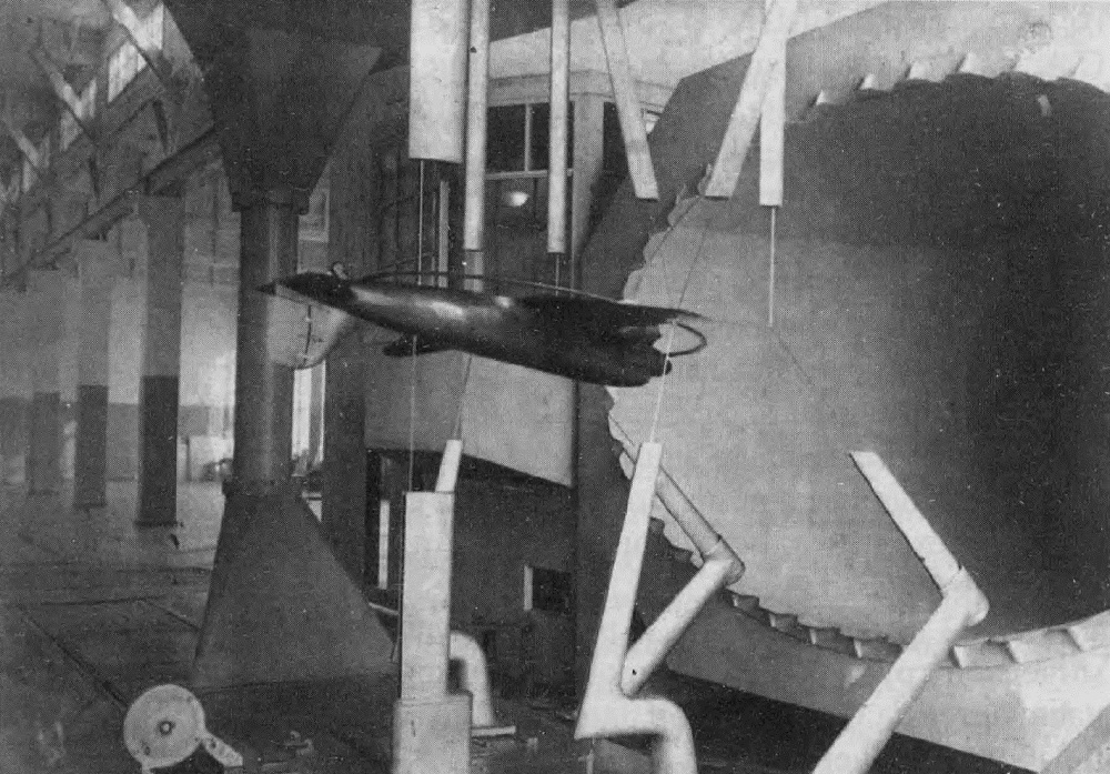 Илл. 11. Продувка модели самолета в аэродинамической трубе Т-203