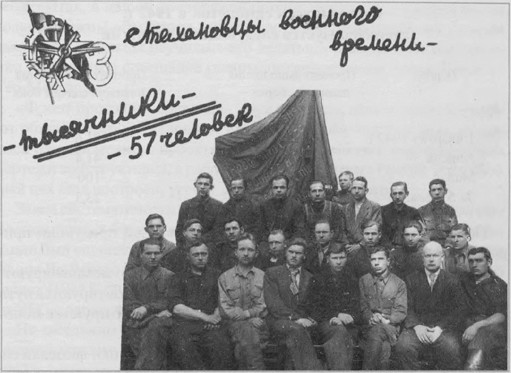 Фрезеровщик 3-го цеха В. М. Уткин, применив новое многоместное приспособление, перевыполнил дневное задание более чем в семь раз, а затем, усовершенствовав его, выполнил новую расчетную норму на 1000%. Фрезеровщик И. И. Монаков, вместе с мастером К. Н. Беляком, сконструировал универсальное приспособление и выполнил норму на 14940%. На приспособлении вместо одной детали одновременно обрабатывалось 24. Слесарь-разметчик Н. Д. Санин, встав на фронтовую вахту в честь защитников Сталинграда, выполнил задание на 51 400 процентов, заменив труд 241 разметчика и 250 слесарей[14]. Это был рекорд производительности труда Всесоюзного значения. Фамилии героев труда можно перечислять долго. К началу 1942 г. в городе стало уже 3800 двухсотников и трехсотников.