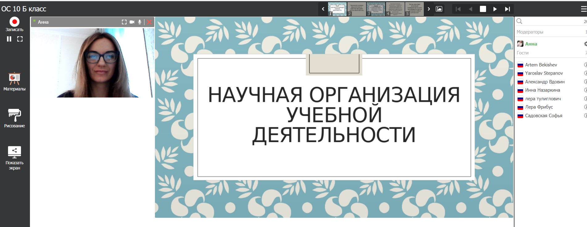Для проведения развивающих занятий можно использовать сервис Zoom. Данный сервис позволяет видеть одновременно всех участников. Zoom можно установить как на ПК/ноутбук/планшет, так и смартфон. Организатор конференции создает собственную учетную запись и проводит конференции/занятия и т.д. длительностью не более 40 минут, что отвечает требованиям СанПиН. К запанированной конференции может подключиться любой человек, которому организатор отправит ссылку или код подключения, представляющий собой цифровой набор. Занятие можно запланировать заранее, сделать повторяющуюся ссылку для постоянных занятий, участники смогут осуществлять вход в определенное вами время. Web-версия программы позволяет делиться экраном со звуком, можно включать отдельные элементы экрана для демонстрации. В настройках можно дать всем участникам возможность делиться экраном, либо включить ограничения, чтобы делать это мог только организатор. В платформу встроена интерактивная доска, можно легко и быстро переключаться с демонстрации экрана на доску. Можно назначить со-организатора, у которого будут такие же возможности, как и у организатора: включать и выключать микрофон у отдельных обучающихся, переименовывать и делить на комнаты. Во время демонстрации экрана есть инструмент «Комментировать» (Co-annotation), позволяющий обучающимся рисовать, выделять, стирать и т.д. отдельные элементы, выражать свое мнение, отношение и т.д.
