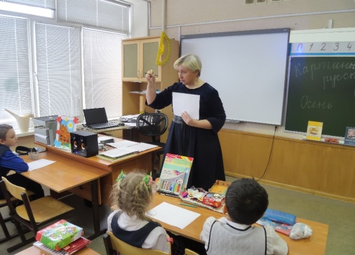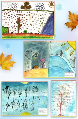 6. В конце занятия ребята показывают друг другу свои рисунки, которые они нарисовали дома к библиотечному часу на тему «Осень, зима».