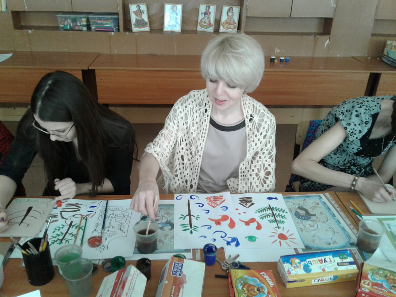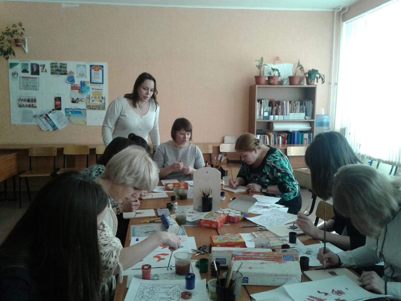 В практике работы нашего педагогического коллектива – совместная деятельность: проведение интегрированных уроков, внеклассных мероприятий, обмен опытом с коллегами. Так, в марте 2017 года мы провели мастер-класс по ордынской росписи для учителей, воспитателей дошкольного учреждения и учащихся Ленинского района города Новосибирска. В практике педагогического общения мастер-класс – это особая форма обмена опытом, позволяющая педагогам знакомиться с новыми технологиями проведения уроков и занятий по внеурочной деятельности и шире применять их в своей работе.