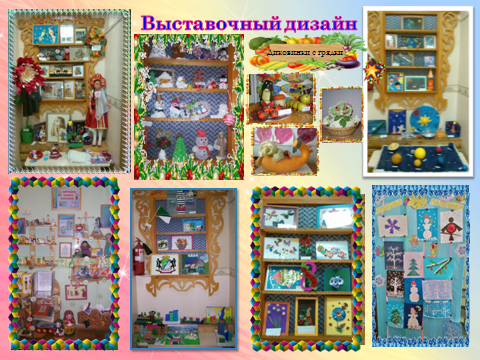 «Выставочный дизайн». Детское творчество важно грамотно и красиво представить. Для этого я организовывала различные тематические выставки, конкурсы, на которых экспонировались «шедевры» юных талантов.