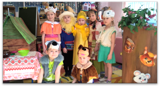 В рамках творческой деятельности особо хочется отметить нашу находку – «Театр своими руками». Это «гастролирование» по группам сада с собственными театральными постановками русских народных сказок. Содержание и вид постановки определялся детьми самостоятельно. Существует замечательный образовательный фильм «Чевостик. Детям о театре», который в доступной форме знакомит детей с жизнью театра. В каждой небольшой серии рассказывается о профессиях – актера, сценариста, режиссера, костюмера. И на протяжении всей недели в группах работали мастерские совместного творчества детей и родителей по изготовлению театральных атрибутов – масок, реквизита, афиш. В качестве творческого задания было определено изготовление платковых кукол. В финале театральной недели состоялся парад платковых кукол в рамках игровой программы «Тайна Третьей планеты».