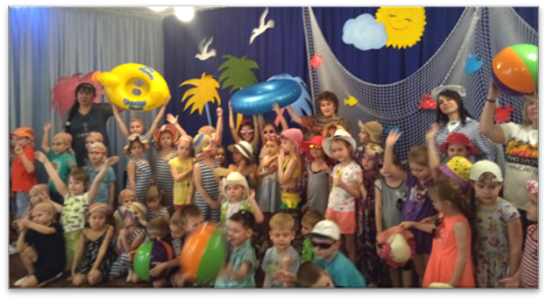 Двигательная активность обязательно присутствует на каждом мероприятии. Это может быть игровая программа, как, например, пляжная вечеринка «У самого синего моря…» в рамках знакомства с Черноморским побережьем в январе 2019 года. Очень приятно в крещенские морозы вспомнить о теплом и ласковом море, надеть купальник, очки, ласты. Это может быть конкурс педагогического мастерства «Фестиваль народных игр» в формате игровой карусели.