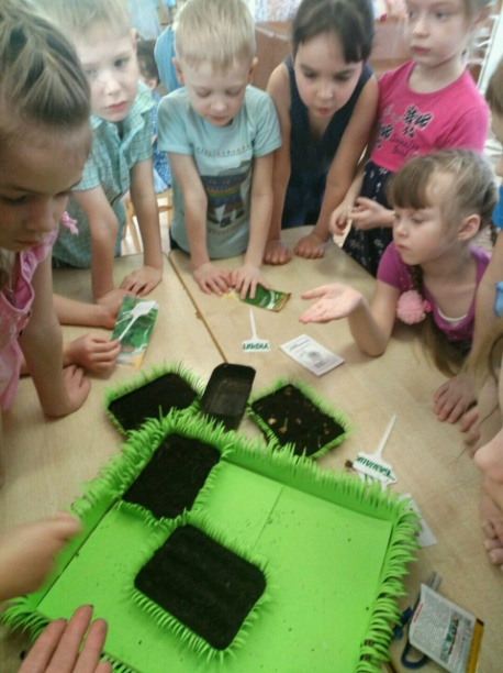 1) Дети рассматривали луковицы, семена: помидора, укропа, петрушки, овса, капусты, базилика, цветов. Проводились беседы с детьми: «В мире растений», «Все начинается с семени», «Посев семян», «Первые всходы», «Витамины для детей».