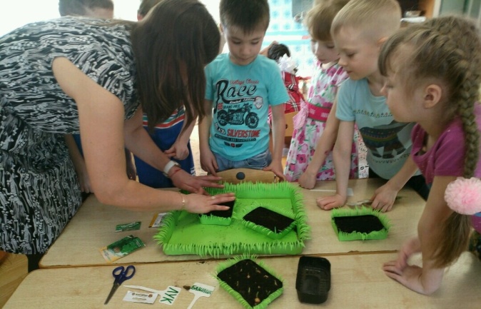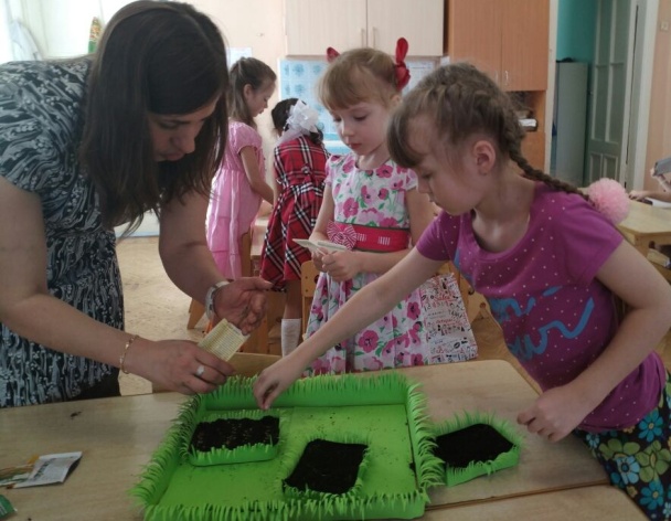 4) Дети участвовали в подготовке семян растений (помидоры, овес, базилик) к высадке; сеяли семена зелени – укропа и петрушки, помидоров, цветов; сажали лук.