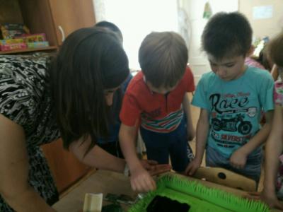 Материал и оборудование: лоток любой формы, песок, глина, перегнившие листья.