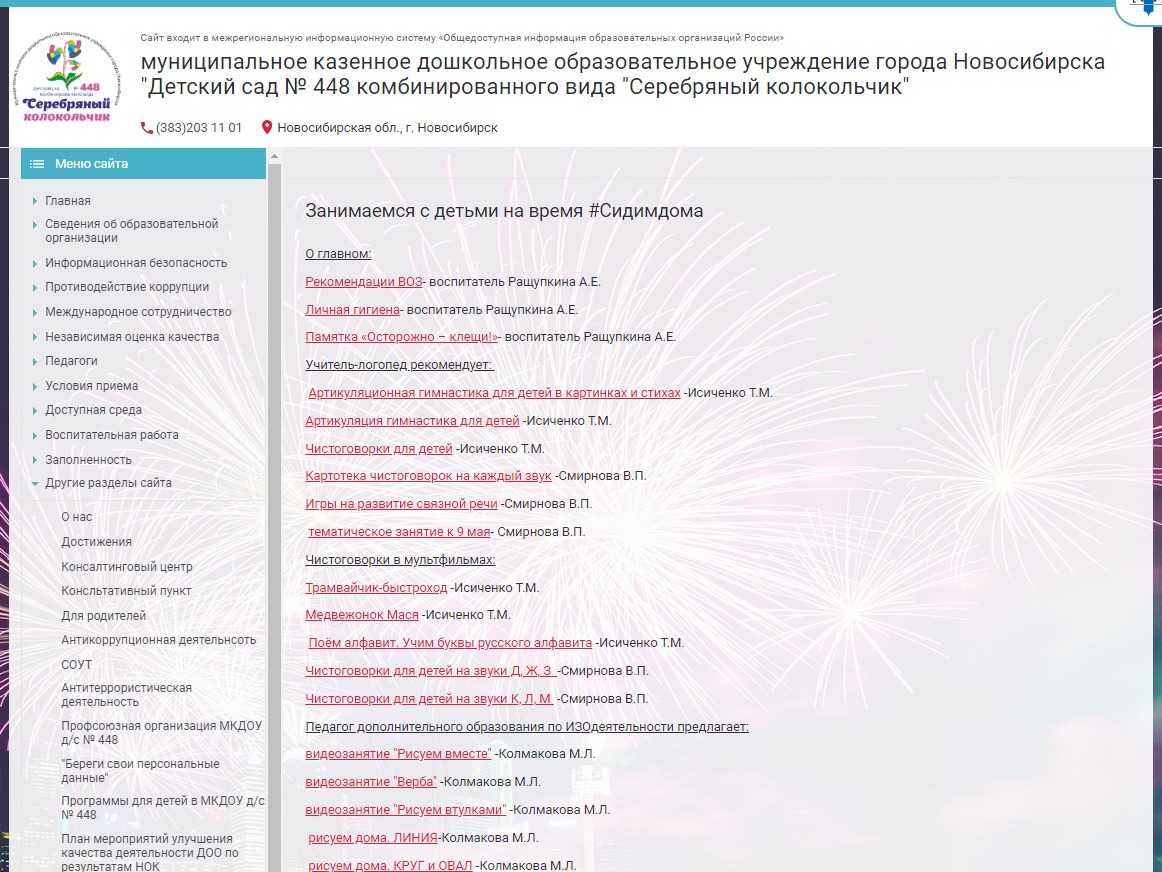 С этой целью на официальном сайте МКДОУ № 448 «Серебряный колокольчик» была создана страничка #Сидимдома, которая регулярно пополняется тематическими презентациями, видеозанятиями, мастер-классами.