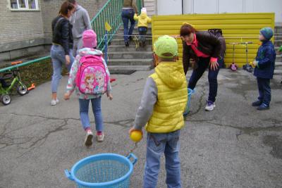 Итак, находясь в поисках интересных родителям форм работы, способствующих вовлечению их в образовательный процесс, укреплению отношений сотрудничества и обеспечения преемственности семейного и общественного воспитания мы разработали такое мероприятие, как «полоса препятствий до дверей детского сада». Всем родителям и детям предлагается по пути от калитки детского сада до главного входа преодолеть спортивные препятствия: это могут быть прыжки в классики, подлезание под дугой, скольжение по скамейке, забрасывание мячей в корзину и другое. Дети и родители получают заряд бодрости и позитива. Встреча родителей и детей производится ежемесячно по пятницам с 7 до 8 утра, при этом каждая встреча сопровождается выделением цвета, то есть используется определенный цвет, который известен заранее всем участникам образовательного процесса. Предварительно за неделю все участники оповещаются о планируемом цвете. Кроме того, подбирается инвентарь по тематическому цвету.