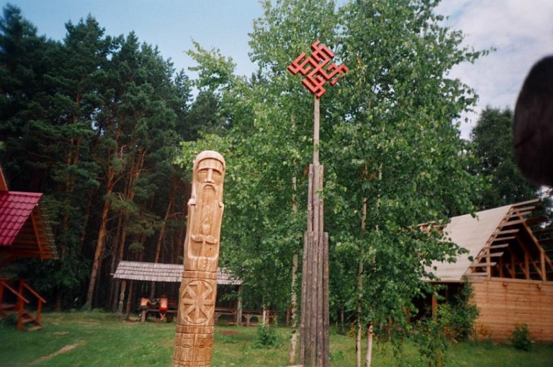 Обратимся к современной ситуации: к настоящему времени д. Окунево и ее окрестности стали своеобразным брендом Омской области, многие называют ее «местом силы». Начиналось превращение Окунево в туристический центр в начале 1990-х гг., с приездом Расмы Розитис (последовательницы индийского гуру Бабаджи), объявившей Окунево местом, в окрестностях которого 300 тыс. лет назад существовала развитая цивилизация и храм индуистского божества Ханумана. В 1994 г. ею был основан ашрам «Омкар Шива дхам». Далее «раскручиванием» идеи об особой значимости этого места занялись средства массовой информации, публицисты [1; 2 и др.]. Религиозные общины и центры стали проводить массовые праздники, на которые приглашались туристы (самые популярные – фестиваль «Солнцестояние» и бабаджистский праздник «Наваратри»). Эти праздники можно отнести и к факторам, формирующим образ Окунево в массовом сознании, и к механизмам его трансляции. Приток людей, принадлежащих к нетрадиционных верованиям, меняет и внешний облик деревни – появляются яркие дома, имеющие надписи, необычные рисунки, резьбу.