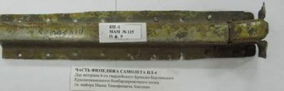 Меня зовут Андрей, я учусь в 6-м классе МБОУ СОШ № 190. В нашей школе есть музей «Боевой Славы авиации», в котором я не раз бывал. О музее я узнал от старшего брата Александра, который тоже окончил нашу школу и был одним из активных помощников музея. Саша в 2013 году поступил в Рязанское Высшее Воздушно-десантное Командное училище имени В. Маргелова (Военный институт) и сейчас несет службу в должности лейтенанта, обучает молодых бойцов в армии исполнять воинский долг по сохранению мира и спокойствия в стране. Я читал книги и смотрел фильмы о военных действиях 1941-45 годов. Однажды, находясь в музее, я увидел погнутую металлическую деталь, с облупившейся зеленой краской, под ней было написано: «часть фюзеляжа самолета ИЛ-4», дар ветерана 6-го гвардейского Брянско-Берлинского Краснознаменного бомбардировочного полка гвардии майора Ивана Тимофеевича Амолина.