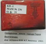 В 1982 г. Иван Тимофеевич был в гостях в музее и подарил свои военные фотографии, фотографии, сделанные во время встреч с однополчанами в Москве и Волгограде, и священную землю с мест боев.