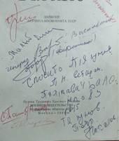 У нас в музее хранится письмо и книга Ю. А. Гагарин «Дорога в космос», г. Москва 1981 г., с автографами ветеранов, вдов, дочерей, сыновей и мужей, погибших 6 и 16 АПД, подписанные во время встречи в Москве, 29.05. 1981 г. Это подарок Амолина И.Т.