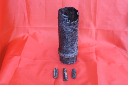 Фашисты установили на высоту зенитные орудия, и от авиации пришлось отказаться. Поэтому в дальнейшем при штурме использовались пушки. Здесь представлен образец шрапнельного снаряда.