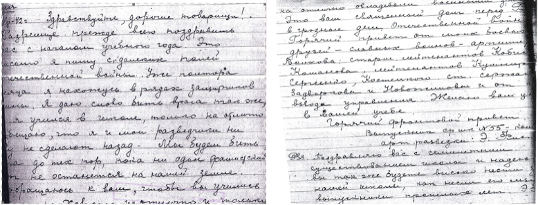 Письмо Элия Фистеля учащимся школы № 55 с поздравлением к новому учебному году (1942 год)