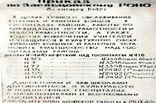 Приказом по Заельцовскому РОНО от 08.09.1942 года было обозначено составить план шефской помощи госпиталям района.