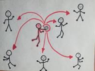 Описание игры: играющие дети делятся на две команды. Согласно жребию, одна из них становится в центре круга, другая – располагается за кругом. Игроки за кругом перебрасывают мяч друг другу, при этом стремятся попасть мячом в игроков, находящихся в кругу. Каждый ребёнок, осаленный мячом, выходит из круга. Как только все игроки будут осалены, команды меняются местами, и игра возобновляется.