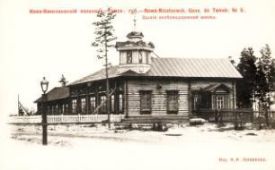 Единственной фотографией, кардинально выбивающейся из ряда остальных, и ломающих эту стройную линию является открытка № 5 2-й серии (1902-03 годы) из издания Н.П. Литвинова: «Здание железнодорожной школы».