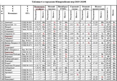 По итогам проведения мероприятий была составлена таблица активности и результативности участия клубов.