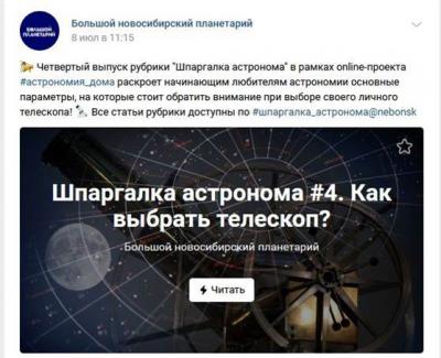 Все публикации проекта «Астрономия дома» можно найти по #астрономия_дома в группе Большого новосибирского планетария ВКонтакте (vk.com/nebonsk).