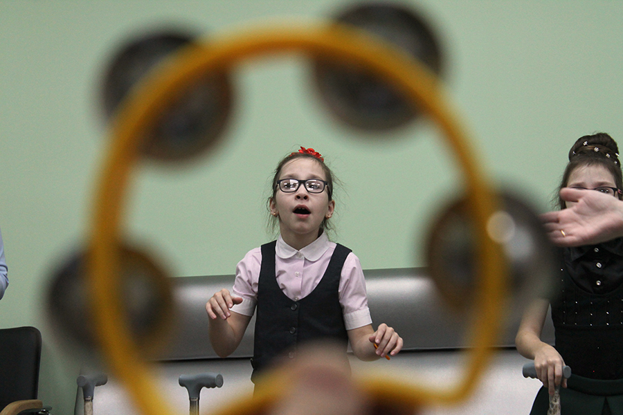Совместное музицирование может возникнуть не сразу. Ребенок может не позволить взрослому вмешиваться в игру. Тогда, наблюдая за ребенком, следуя за ним, мы стараемся понять, что его радует, пугает или настораживает, как влияет на его состояние разная по характеру музыка. Например, Ника (диагноз – расстройство аутистического спектра) не реагировала на музыку и сопротивлялась всем попыткам привлечь ее к совместной деятельности, пока мы не решили, что спокойная вальсообразная и колыбельная музыка будет на первых порах просто сопровождать ее действия, создавая спокойный теплый фон. Постепенно от безразличия она перешла к некоторому заинтересованному слушанию, позволила иногда брать себя на руки и качаться под музыку. В дальнейшем, мы планируем включить Нику в групповые занятия.