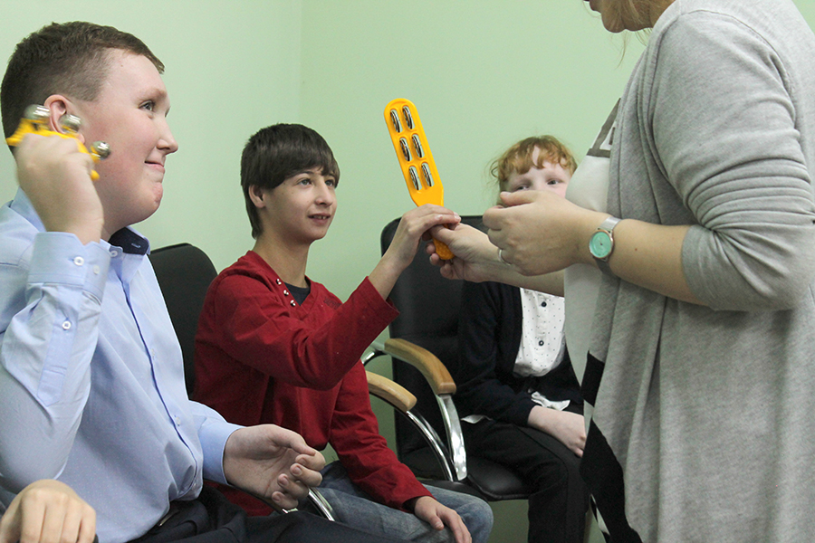 Занимаясь музыкой, мы не ставим перед собой задачу развития собственно музыкальных способностей особого ребенка. Наши цели гораздо шире: стимулирование речи и общения посредством музыкальных занятий, введение музыкальных игр и упражнений как средства развития слухового внимания ребенка, чувства ритма, пространственных представлений, координации движений, коммуникативных навыков и т.п. Музыкальные занятия в нашей студии как своеобразная канва, форма организации совместной деятельности, позволяющая каждому ребенку проявить свои индивидуальные возможности, раскрыть свой внутренний потенциал, научиться выражать свои желания, эмоции, чувствуя себя при этом частью коллектива.