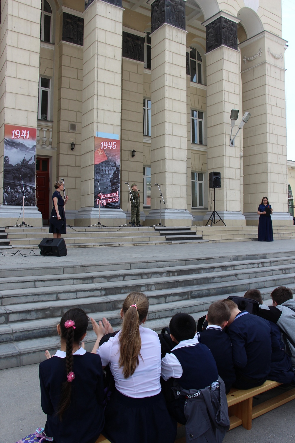 В нашей студии дети с большим удовольствием исполняют песни: «Сигнальщики-горнисты», «По коням, ребята», «Ленинградские мальчишки», «Перелётные птицы» из к/ф «Небесный тихоход», «Офицеры» из к/ф «Офицеры». Мы много говорим, рассуждаем, «погружаемся» в атмосферу военных лет, дети задают много вопросов, им не просто интересно, а важно знать историю создания той песни, которую они исполняют для ветеранов в День Победы. Ценно то, что наши дети понимают, о чём поют, передают характеры, образы героев произведений, атмосферу песенного материала. И эти песни наполняют детей, воспитывают в них самые чистые и замечательные качества – человечность, доброта, честность, благодарность и уважение к пожилым людям.