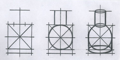 Так, при выполнении конструктивного рисунка бытового предмета предлагается три уровня сложности.