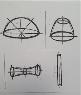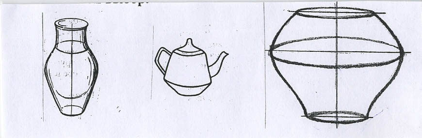 Проблемные ситуации довольно часто используются в процессе обучения изобразительной грамоте. Например, в процессе знакомства с приёмами выявления объема предметов перед учащимися стоит задача: изобразить два бытовых предмета различной формы, выявить объем с помощью штриховки (рис.1).