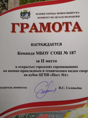 Три года подряд принимаем участие в областном смотре-конкурсе строя и песни «А ну-ка, парни!» в ДК Октябрьской революции. Дважды были вручены благодарственные письма Уполномоченного по правам человека в НСО Шалабаевой Н.Н. А в феврале 2020 года завоевали 3 место.