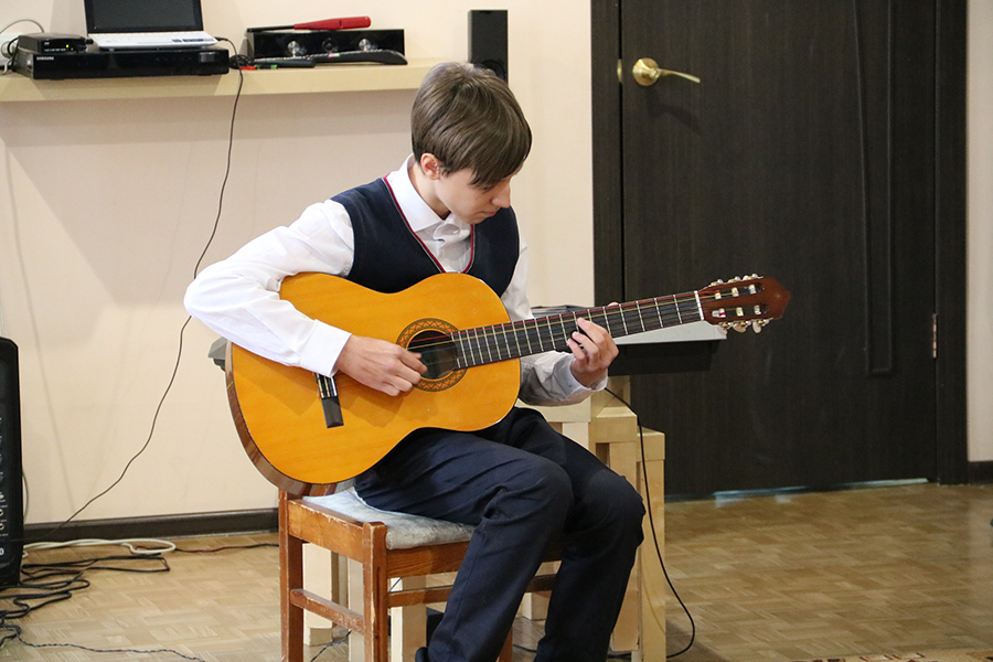 А начинаем мы осваивать эту музыкальную культуру с простых, но важных в воспитательном плане, народных инструментальных композиций, таких как «Во поле березка стояла», «Елочка». А дальше уже идут более сложные произведения русских, советских и зарубежных авторов. Я стремлюсь показывать своим ученикам лучшие образцы мировой музыкальной культуры. И для меня очень важно, чтобы дети понимали многогранность гитарного исполнительства. Это могут быть барды, джаз-гитаристы, солисты ансамблей, просто любители-самоучки. Но всех их объединяет одно – любовь к музыке. Именно любовь, как важнейшее чувство человека, я хочу воспитать в своих учениках. Любовь к своей семье, своей Родине, уважение своей истории. И в этом мне помогает наша нестареющая классика, произведения великих композиторов и поэтов: Р. Рождественский, М. Фрадкин, А. Пахмутова. Их песни действительно содержат в себе огромную энергию любви.