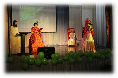 В начале программы детям было рассказано о мероприятиях, которые будут проходить в рамках смены. Затем показан познавательный мультипликационный фильм «История театра», где они познакомились с возникновением и эволюцией театра, как вида искусства. По окончании просмотра Мельпомена предложила детям окунуться в театральную сказку. И на сцене появилась царевна Несмеяна и нянька. Свою каплю веселья и задора внес Скоморох, который провел с детьми 3 веселые игры: «Мячи», «Театральная ромашка» и «скороговорки». Мельпомена давала оценку игр и связывала их с историей театра.