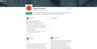 В телеграм-канале namochimanturu (Намочи манту) медицинские журналисты Дарья Саркисян, Марианна Мирзоян, Карина Назаретян и Ирина Моргунова рассказывают о доказательной медицине: о заболеваниях, современных препаратах и медицинских инструментах, об опыте людей, справившихся со сложной болезнью. Отдельное направление – разоблачение мифов и стереотипов о заболеваниях.