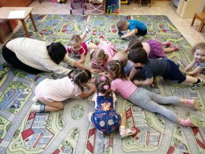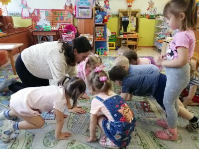 В своей практике применяю игротанцы. Это одна из разновидностей игр, в которых движения выполняются под рифмовки, пальчиковые игры, развивающие подвижность, ловкость и создающие положительный микроклимат. Обычно игротанцы проводятся в минуты до или после интенсивной интеллектуальной нагрузки, а также в виде одной из форм организации детей и родителей на утренниках. К примеру, перед Новым годом на досуговом мероприятии участники играют в игру «Тепло-холодно». Под музыку «Новогодний парад» педагог говорит: «Тепло», – дети с родителями танцуют, на слово «Холодно» – обнимаются.