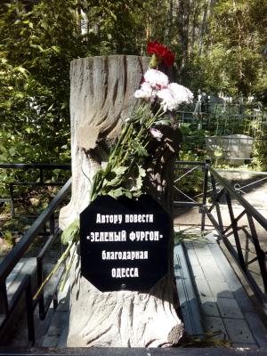 От нашего города была установлена памятная табличка со словами, важными для каждого писателя: «Помним. Читаем». А с торца памятника – привет из любимого города писателя: «Автору повести «Зеленый фургон» – благодарная Одесса.