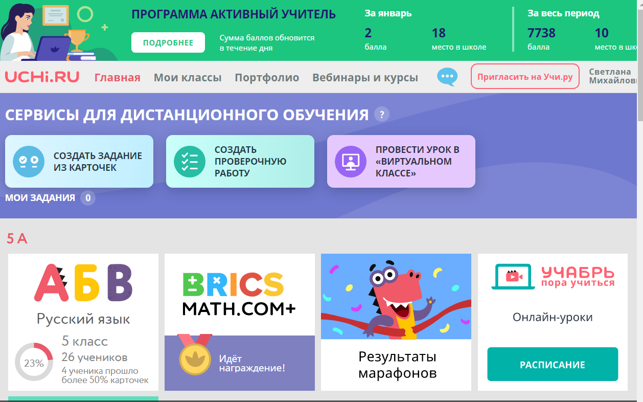Первый ресурс, который я использую для организации дистанционного урока – это платформа Учи.ру. С этим ресурсом я начала работать в сентябре 2019 года.