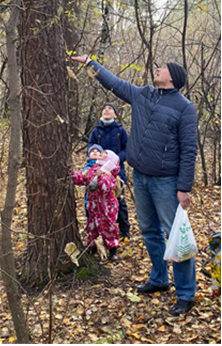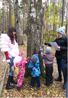 Мы с нашими воспитанниками и их родителями регулярно организуем различные экскурсии выходного дня (в парк, на стадион, в кино и театры). Особенно мы любим ходить в расположенный рядом с нашим микрорайоном сосновый бор.