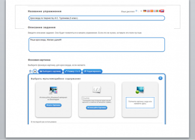 3. Выбираем аудиозапись, загрузив из YouTube ссылку. Я загружала аудиофайл на страницу педагогического сообщества НСпортал, а оттуда уже копировала ссылку для кроссворда. Так же прописывала подсказку и ответ.