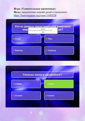 Основываясь на том, что современное поколение детей отлично ориентируется в мире коммуникаций и любит пользоваться технологическими новинками, мною разработано методическое сопровождение к образовательным программам с применением интерактивных игр и упражнений.