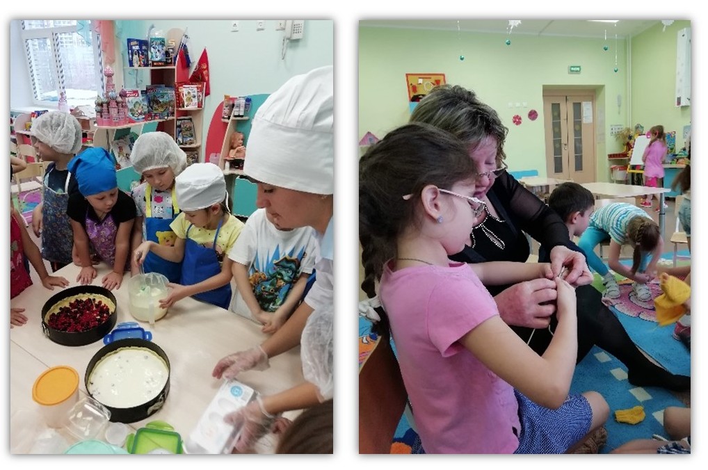 Благодаря родителям, мы познакомились с такими профессиями, как фармацевт, офтальмолог, машинист крана, артист цирка, военный (офицер), кондитер. Родители совместно с детьми подготовили презентации, наглядный материал о своей профессии. Знакомство с многими профессиями мы старались привязать к темам недель. Фармацевт познакомил ребят с историей аптеки, рассказал, как хранятся лекарства и как они могут помочь, а также навредить человеку. Офтальмолог рассказала о строении глаза, о том, что необходимо беречь зрение, как его можно сохранить и помочь, если оно уже нарушено. Каждый ребенок побывал в роли офтальмолога и ощутил на себе, как трудно быть незрячим. Папа, который представил профессию машиниста крана, подготовил видеофильм, который он снял на своей работе. Ребята смогли посетить так называемую виртуальную экскурсию и узнать о большом количестве кранов, побывали в кабине машиниста, познакомились с управлением техники. А также закрепили правила безопасного поведения на строительных объектах. У одного из родителей была возможность пригласить артиста цирка – жонглера. Артистка подготовила детям небольшое цирковое шоу, от которого дети, безусловно, были в восторге. Каждый ребенок захотел стать жонглером, но жонглировать предметами оказалось сложно. И наша гостья рассказала детям, что профессия артист цирка требует огромных усилий над собой, силу воли, терпение и желание дарить радость другим. Мама нашего воспитанника договорилась о встрече с офицером кадетского корпуса. Он пришел к нам в сад с юным кадетом, и они рассказали о профессии военного и пребывании курсантов в кадетском корпусе и его уставом. Показали макеты оружия, вместе с детьми разбирали и собирали его, все ребята практиковали себя в надевании противогаза. Знакомство с профессией кондитер мы связали с лексической темой «Фрукты. Ягоды». Кондитер не только познакомила со своей спецификой работы, но и подготовила практику. Все стали юными кондитерами и совместно приготовили ягодный пирог, который с подписанного родителями согласия попробовали.