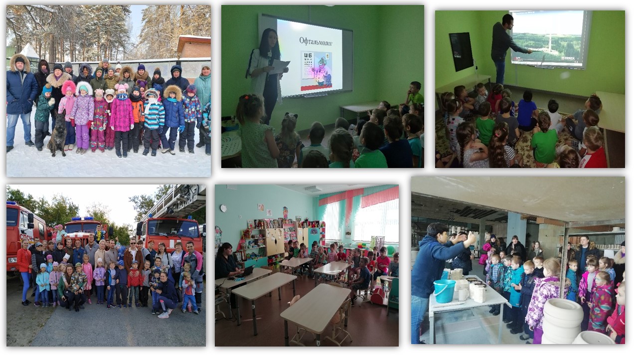 Хотелось бы чуть подробнее рассказать о реализации педагогического проекта «Профессии наших родителей». С помощью данного проекта мы хотели не только познакомить детей с разными профессиями, но и вовлечь родителей в этот познавательный процесс. Часто дети выбирают те же профессии, которые имеют их родители. Поэтому знакомство с профессиями началось с вопроса «Кем работают твои родители?». Мы сняли небольшое видеоинтервью с участием детей и предложили посмотреть родителям. Из этого интервью стало понятно, что большая часть детей не знает, кем работают родители. Далее мы провели опрос, готовы ли родители принять участие в реализации проекта. Мы предложили родителям презентовать свои профессии детям. Большая часть родителей откликнулась положительно. В течение года мы читали разную художественную и познавательную литературу, рассматривали иллюстрации, играли в сюжетно-ролевые игры, ставили театрализованные постановки, закрепляли знания в продуктивной деятельности, но самыми запоминающимися были экскурсии и визиты представителей разных профессий.