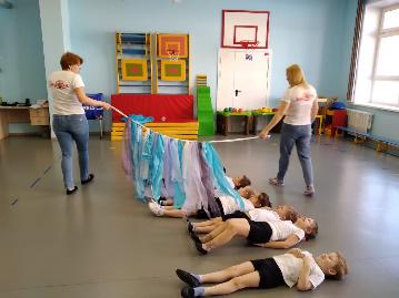 Решая эти задачи были использованы различные игры и упражнения. Для проработки тактильной чувствительности был создан сенсорный занавес «Ласковая волна», который помог детям включить свою фантазию, раскрепоститься и настроиться на совместную деятельность. Для развития слухового восприятия использовались загадки, что позволило обобщить и систематизировать знания детей в рамках темы недели. Комплекс общеразвивающих и основных видов движений «Обитатели моря» дал возможность примерить на себя роль обитателей водоемов, имитировать их движения, использовать механизм управления движениями посредством центральных моторных программ, что позволило углубить знания, совершенствовать крупную моторику и ориентировку в пространстве. Пальчиковая гимнастика «Морские животные» (В. Волина) способствовала развитию умений детей подражать нам, взрослым, вслушиваться в нашу речь и ее понимать, повысила речевую активность, создала благоприятную эмоциональную атмосферу, сделала речь более четкой, ритмичной, яркой, помогла детям сконцентрировать внимание и правильно его распределить. Для деления на малые группы нами использовались социо-игровые технологии, прием «Цветные резиночки». Это позволило самостоятельно объединиться детям в две команды по общему признаку. Конструирование из мягких модулей по заданной схеме – это своеобразная творческая и продуктивная деятельность. Посредством такой игры были даны задания, которые не только поддерживали интерес детей, но и активизировали познавательную деятельность, двигательную сферу, коммуникативные навыки. Подвижная игра «Берегись, акула!» способствовала формированию навыков свободной ориентировки в окружающем пространстве, умению быстро реагировать на сигнал, действию сообща, дала положительные эмоции. А тематическая считалочка помогла распределить роли и установить очередность в игре, чтобы всем было весело и никому не обидно. Все мероприятие закончилось упражнением на релаксацию «Сон на берегу моря», что позволило детям успокоиться, нормализовать эмоциональное состояние и дыхание.