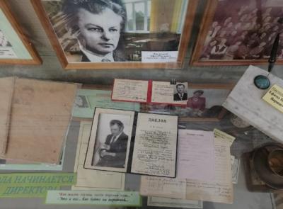 Музей гимназии № 10 г. Новосибирска. Стеллаж, посвященный Е. Н. Варшицкому