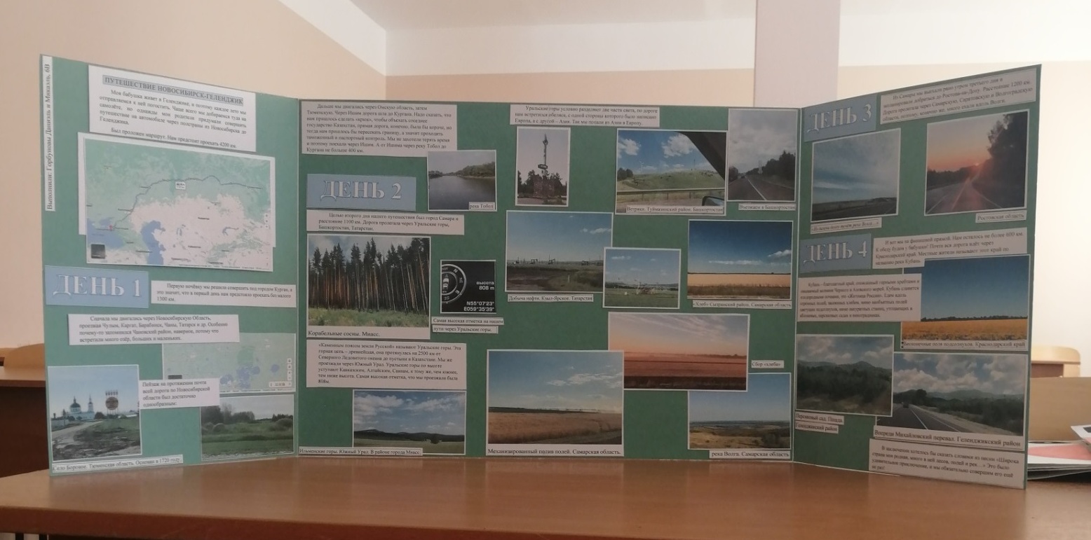 Во время декады науки и проектов в гимназии проходил конкурс – сочинение на тему «Моё путешествие». Кто-то описал поездку в виде сочинения, приложив рисунки и фотографии, а кто-то оформил целые плакаты и раскладушки, описав каждый свой день наглядно.