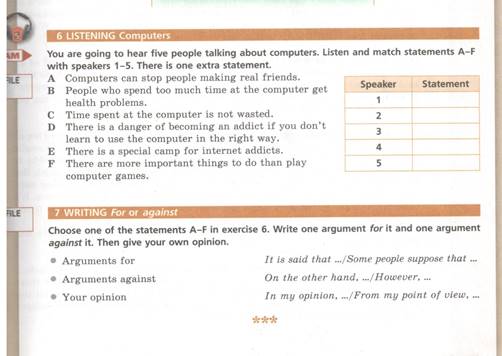 – Описывают картинку, сравнивают две картинки в разделе «Focus on Exams».